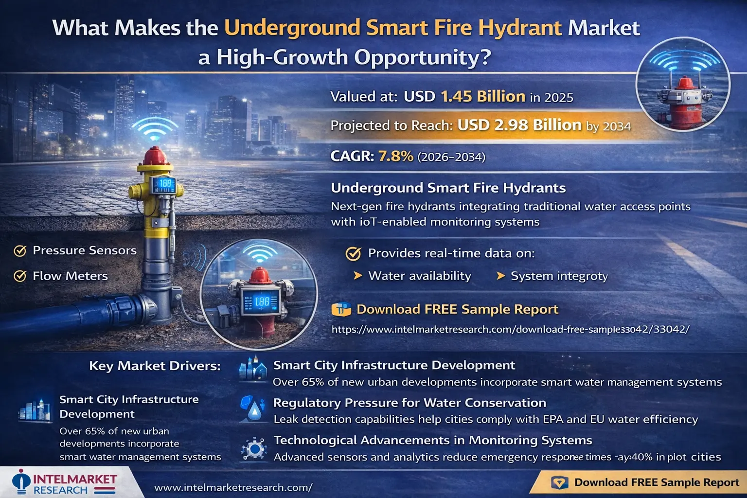 According to a new report from Intel Market Research,Global Underground Smart Fire Hydrant market was valued at USD 1.45 billion in 2025 and is projected to reach USD 2.98 billion by 2034, growing at a CAGR of 7.8% during the forecast period (2026-2034). This growth is driven by rapid urbanization, stringent fire safety regulations, and increasing investments in smart city infrastructure globally.