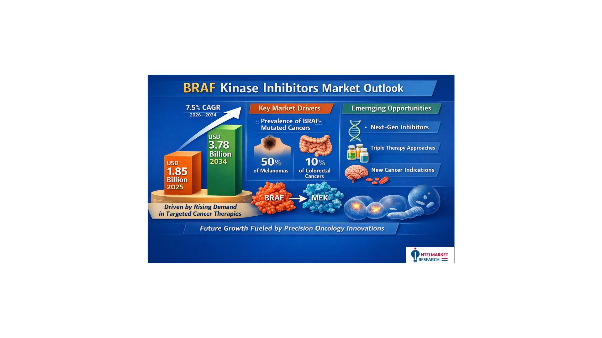 According to a new report from Intel Market Research, the global BRAF kinase inhibitors market was valued at USD 1.85 billion in 2025 and is projected to reach USD 3.78 billion by 2034, growing at a CAGR of 7.5% during the forecast period (2026–2034). This growth trajectory reflects the expanding applications of BRAF inhibitors in precision oncology and the increasing prevalence of BRAF-mutated cancers worldwide.