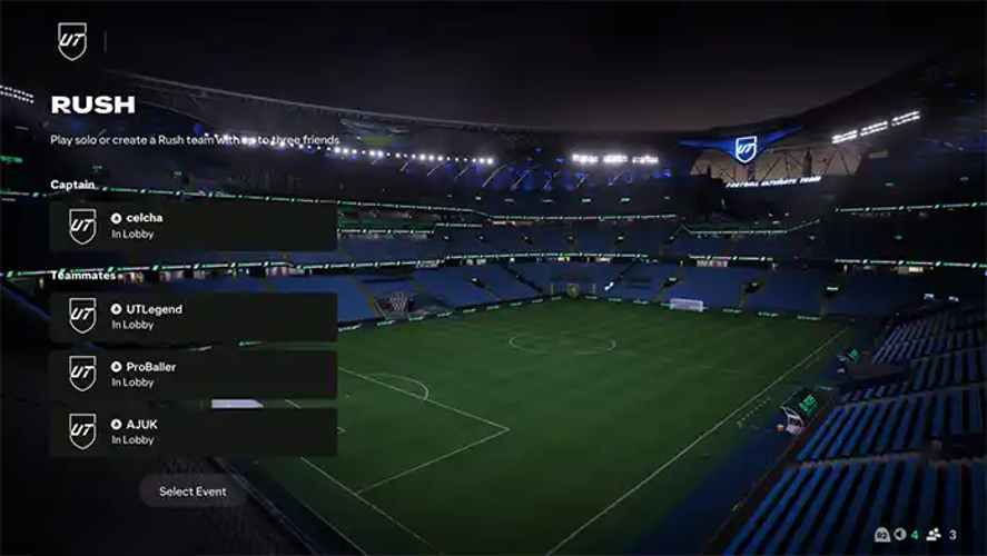 - Build your ideal squad in Ultimate Team Rush, participate in special events, and collect Rush Points as you advance.