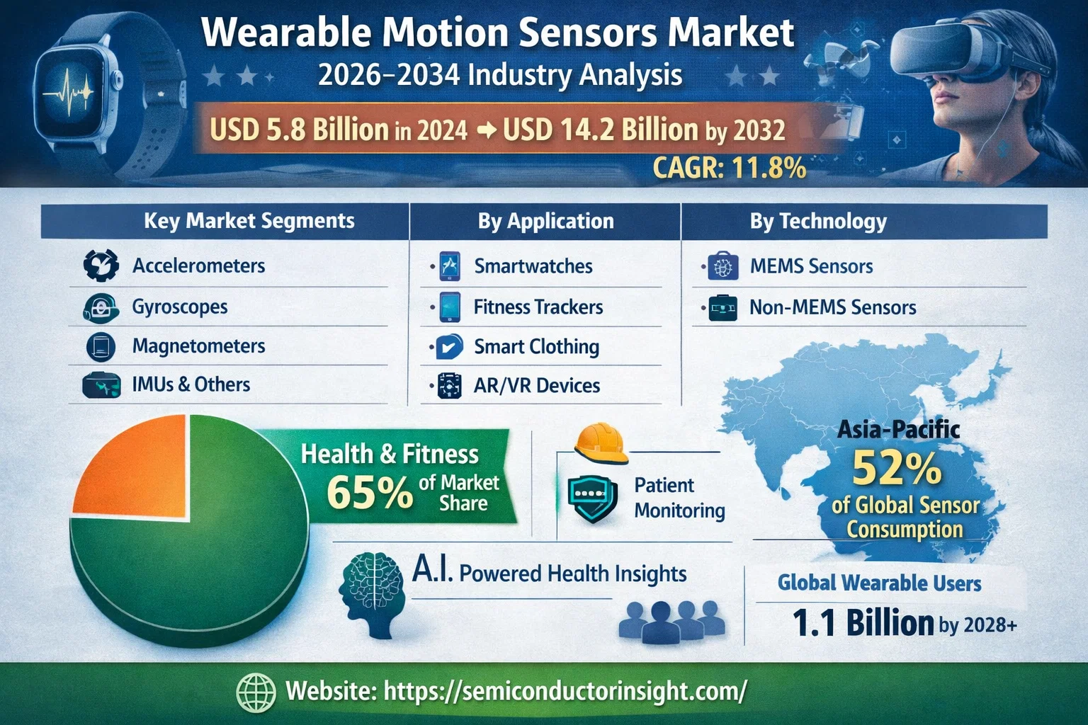 Global Wearable Motion Sensors Market, valued at a robust USD5.8 billion in 2024, is on a trajectory of significant expansion, projected to reach USD14.2 billion by 2032. This growth, representing a compound annual growth rate (CAGR) of 11.8%, is detailed in a comprehensive new report published by Semiconductor Insight. The study highlights the critical role of these advanced sensing technologies in enabling real-time health monitoring, fitness tracking, and immersive user experiences across a wide range of consumer and professional devices.