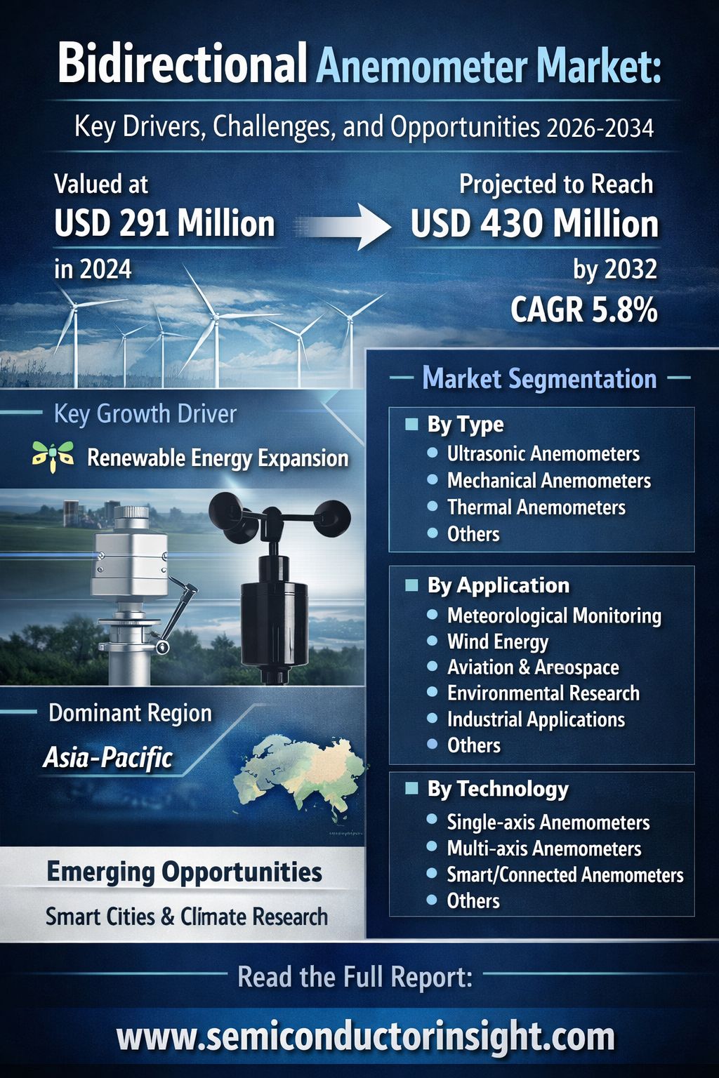Global Bidirectional Anemometer Market, valued at USD291 million in 2024, is projected to reach USD430 million by 2032, growing at a compound annual growth rate (CAGR) of 5.8%. This steady expansion is detailed in a comprehensive new report published by Semiconductor Insight. The study underscores the critical role these precision wind measurement instruments play across various sectors, from renewable energy and meteorology to aerospace and environmental monitoring, driven by increasing demands for accurate airflow and wind data.