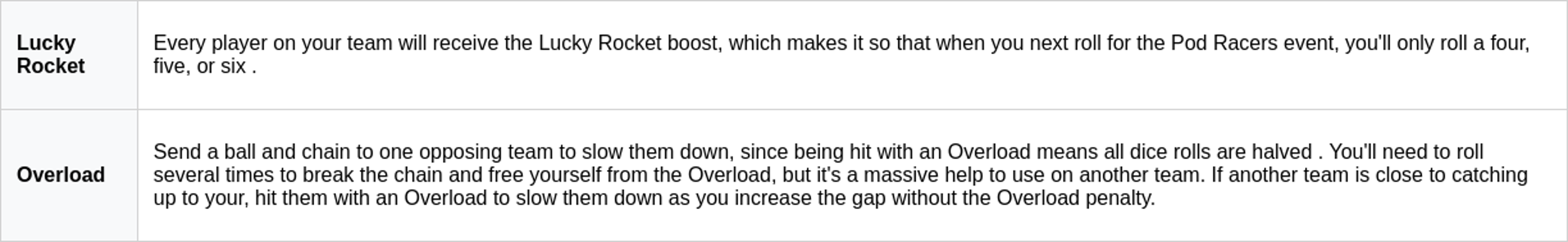 Lucky Rocket and Overload.