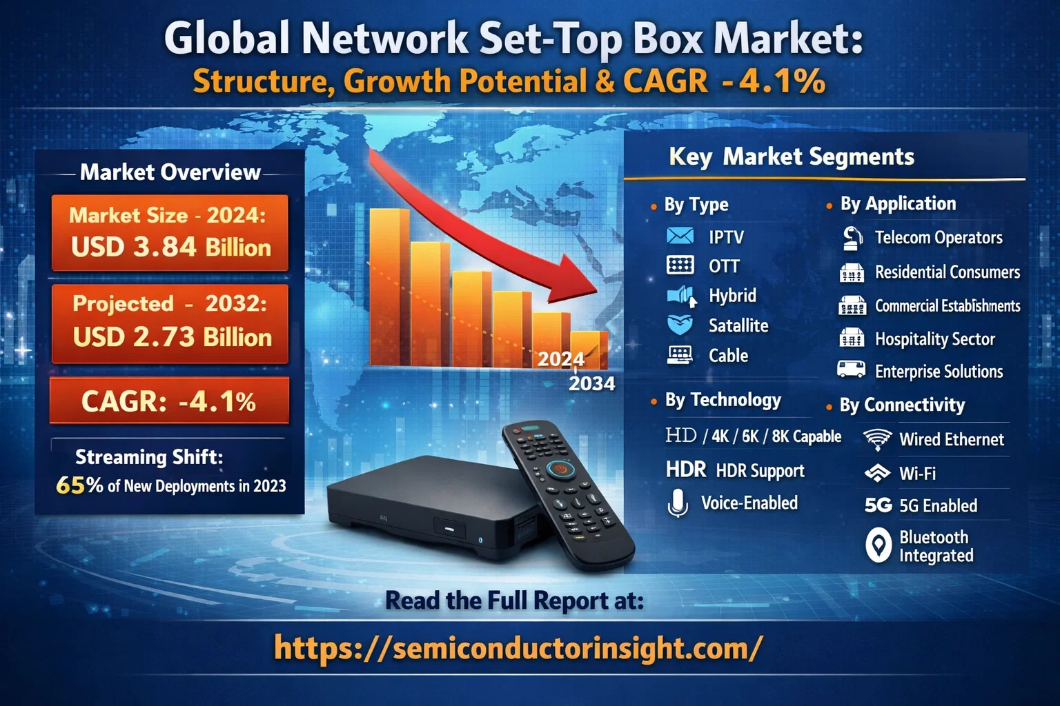 global Network Set Top Box Market, valued at USD 3.84 billion in 2024, is undergoing significant transformation as it navigates shifting consumer preferences and technological evolution, projected to reach USD 2.73 billion by 2032. This market contraction, representing a compound annual growth rate (CAGR) of -4.1%, is detailed in a comprehensive new report published by Semiconductor Insight. The study examines how these critical entertainment gateway devices are adapting to the rise of streaming services and changing pay-TV landscapes.