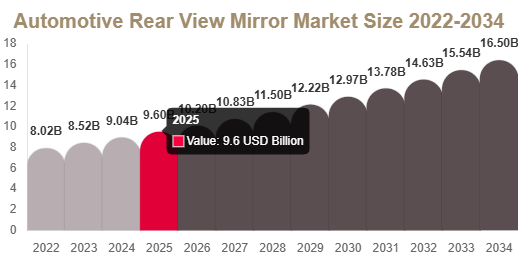 Automotive Rear View Mirror Market Size by 2034: USD 18.75 Billion