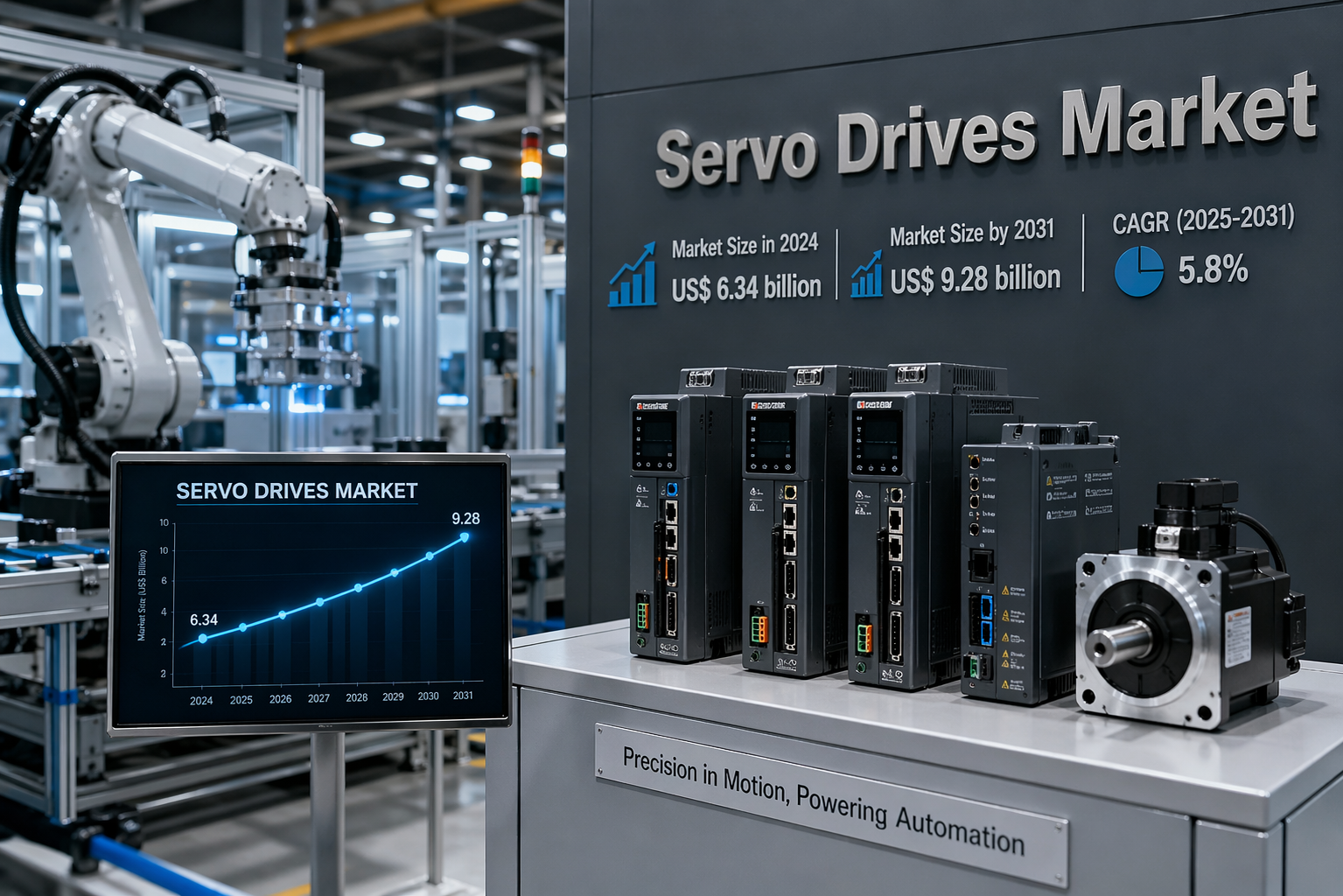 The Servo Drive Market is witnessing consistent growth, supported by the rising adoption of automation across diverse industries. According to The Insight Partners, the market is projected to grow from US$ 6.34 billion in 2024 to US$ 9.28 billion by 2031, registering a CAGR of 5.8% during 2025–2031. The increasing deployment of robotics, along with advancements in smart manufacturing technologies, is driving market expansion. For detailed insights, refer to the Servo Drive Market Growth.