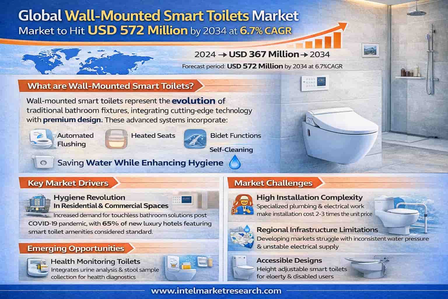 According to a new report from Intel Market Research, the global wall-mounted smart toilets market was valued at USD 367 million in 2024 and is projected to reach USD 572 million by 2034, growing at a CAGR of 6.7% during the forecast period (2026–2034).
